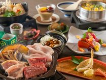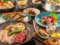 【季節の会席・秋】牛・豚・鶏3種の陶板焼きと北秋田の郷土料理“きりたんぽ鍋”で秋田を満喫!
