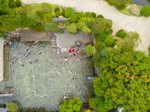 日本一の源泉掛け流しの混浴大露天風呂。