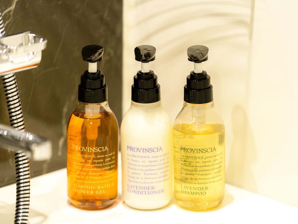 ○ ハンドタオル ○ ボディソープ ○ ドライヤー ○ 温水洗浄トイレ ○ 歯ブラシ・歯磨き粉 × 石けん ○ 羽毛布団 ○ くし・ブラシ ○ バスタオル × 浴衣 ○ 髭剃り ○ シャンプー