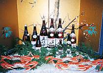 舟盛と蟹・山菜付の美味料理など好物をお召し上がり下さい!好物1品千円♪平日子供1名無料♪お問合せ