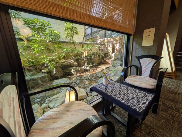 当館の庭を眺める静かなロビーです。