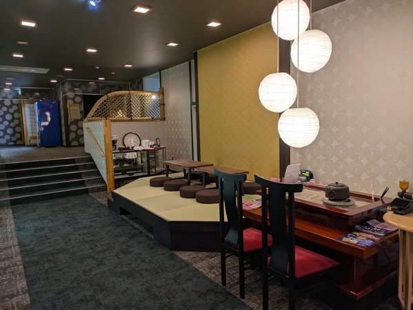 帳場とロビー・ラウンジは落ち着いた和の空間