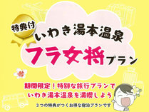 【フラ女将】ゆったりいわきの温泉を満喫♪チェックイン22時までOK!3大特典付<素泊り>
