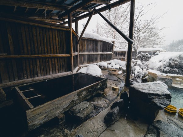 凛とした冬の空気。雪景色を眺めながら過ごす「焼乃湯」ならではの湯浴みは、忘れられない旅の思い出に。