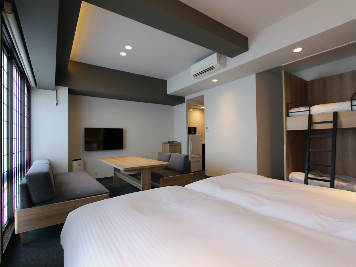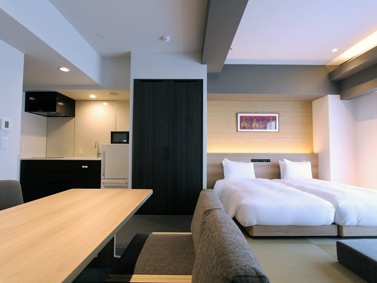 スイートは和洋室。標準的な部屋設備 全室バストイレ・全室シャワー・全室冷暖房・テレビ・空の冷蔵庫 インターネット関連 全室対応
