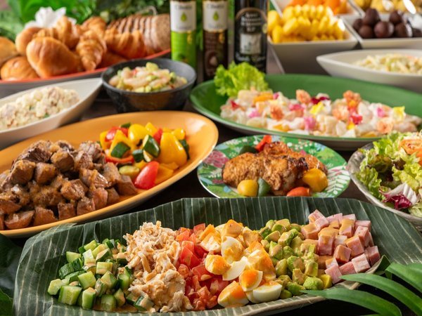 お客様が安心してお食事をお楽しみいただけるよう、バイキング会場では特定原材料8品目(小麦・乳・卵・そば・落花生・かに・えび・くるみ)をブッフェ台上のメニューに表示しております。
