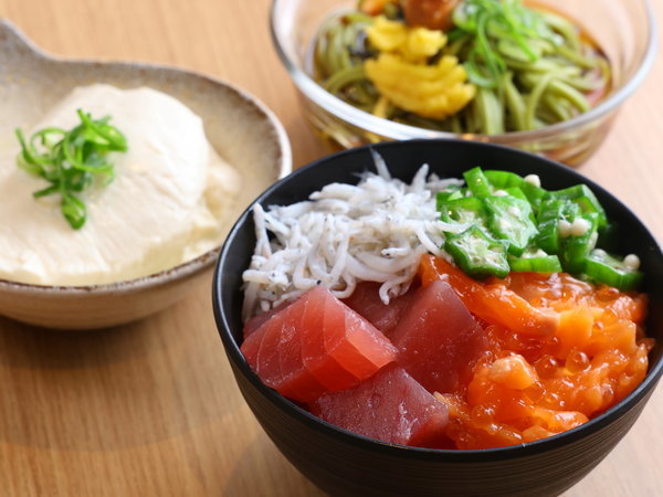 ご宿泊者様限定「夜鳴きそば」をご用意!朝食は「海鮮丼」をはじめ約20種類の小鉢をご用意♪ |
