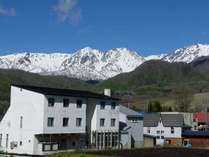 栂池高原スキー場にあり、北アルプスを一望、建物横は「塩の道」。信州観光のベースに便利です