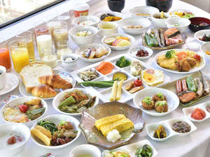 種類豊富な80品朝食バイキング。オーシャンビューを眺めながらお召し上りください。 |