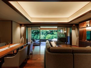 贅沢な120uの客室には、源泉かけ流しの露天風呂、