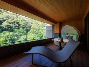 【露天風呂付】大谷山荘スイート:開放的なテラスでは、手足を広げてゆったりとくつろげます。 |