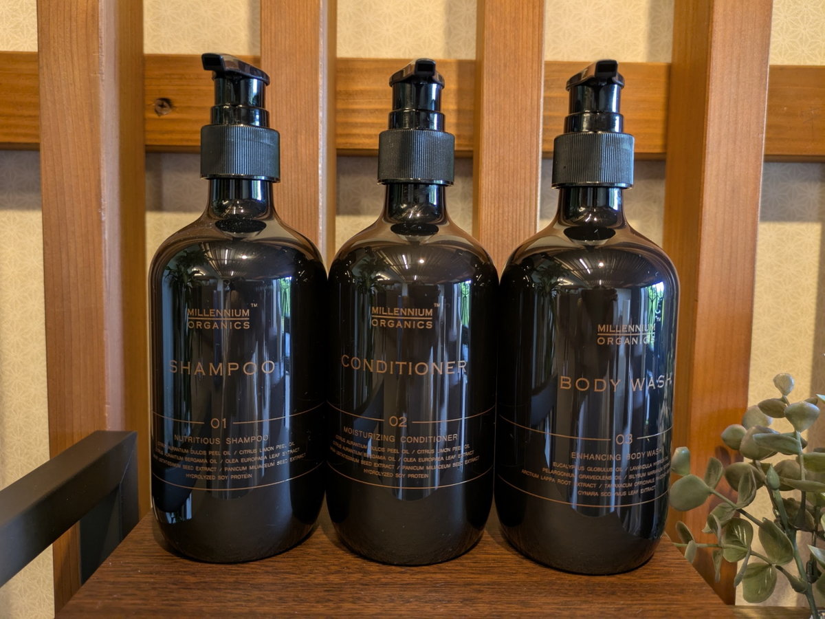 ○ ハンドタオル ○ ボディソープ ○ ドライヤー ○ 温水洗浄トイレ ○ 歯ブラシ・歯磨き粉 × 石けん ○ 羽毛布団 ○ くし・ブラシ ○ バスタオル ○ 浴衣 ○ 髭剃り ○ シャンプー
