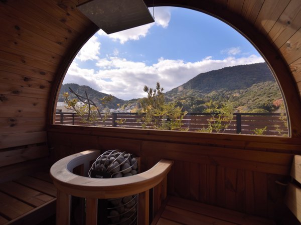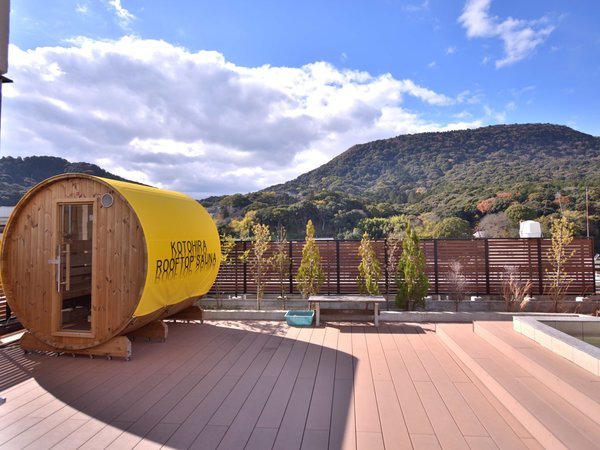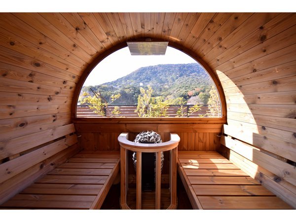 屋上のバレルサウナ。露天風呂と一緒にお楽しみ頂けます