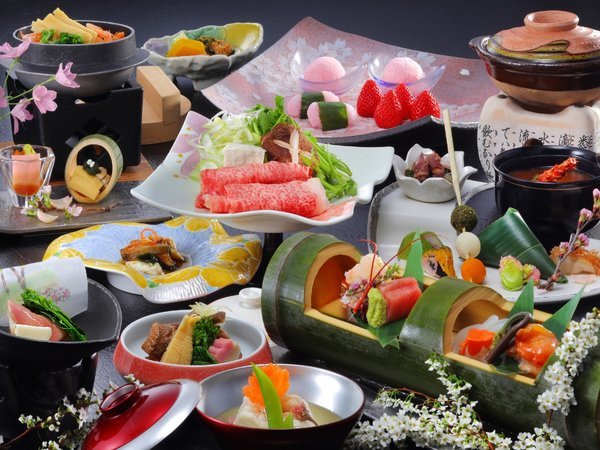 - 【9つの湯めぐり】地元食材で季節を堪能、旬の会席で五感にご褒美