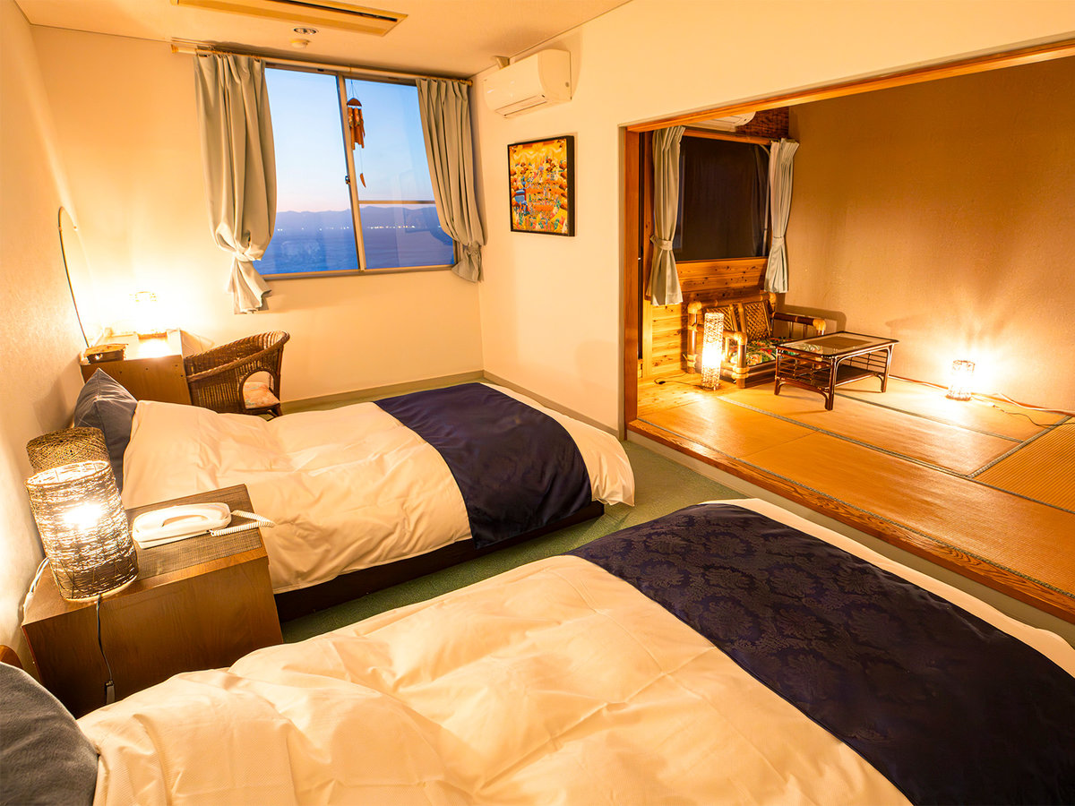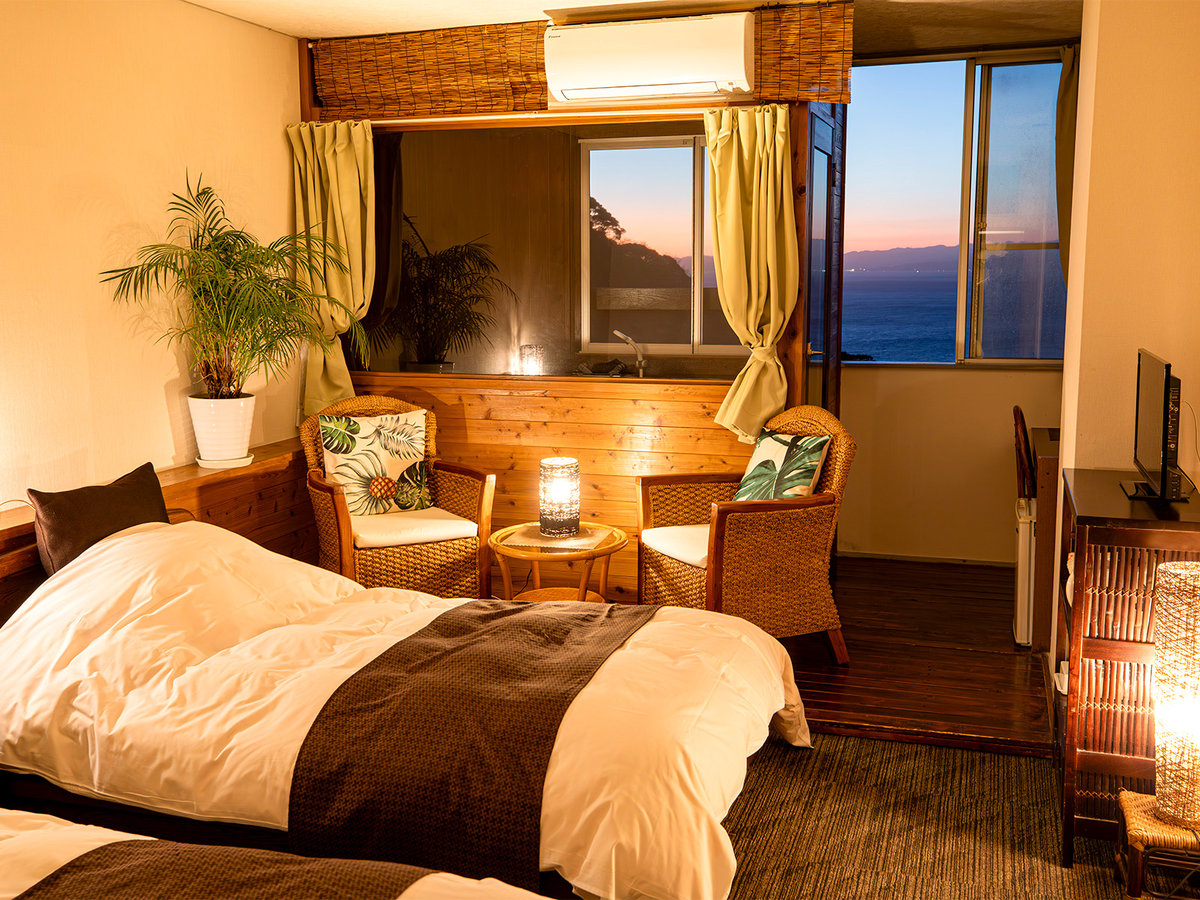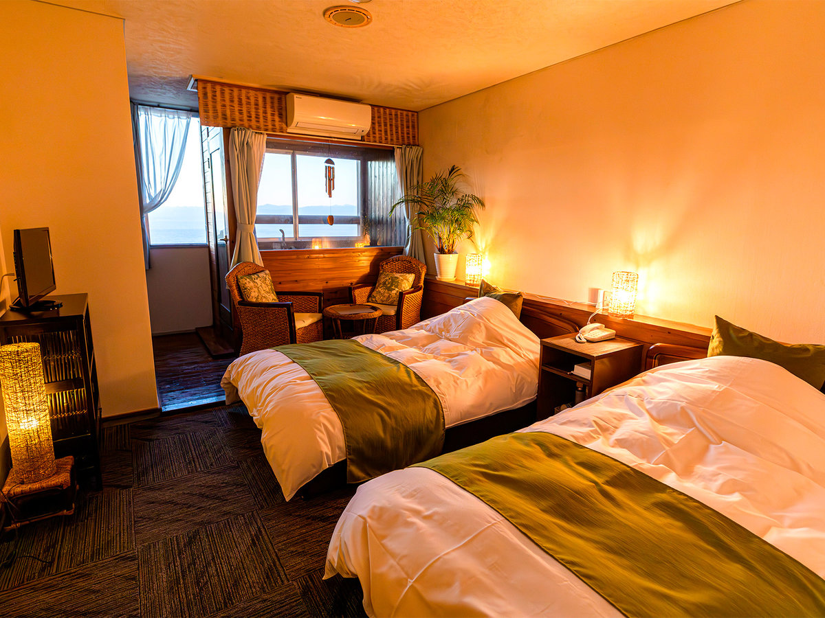 洋室 和室 和洋室 その他 総部屋数 6室 0室 3室 0室 9室 ▼洋室の内訳(部屋タイプと広さ) シングル ダブル ツイン スイート 0室 0室 5室 2室 - - - - 部屋補足 全室に海を見渡す露天風呂付 標準的な部屋設備 全室バストイレ・全室シャワー・全室冷暖房・テレビ・空の冷蔵庫 インターネット関連 全室対応