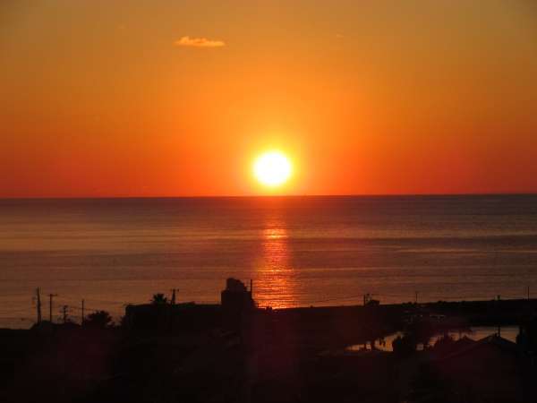 高台にある新館詩季亭各お部屋からの眺望。夕陽が駿河湾に沈む景観は圧巻。