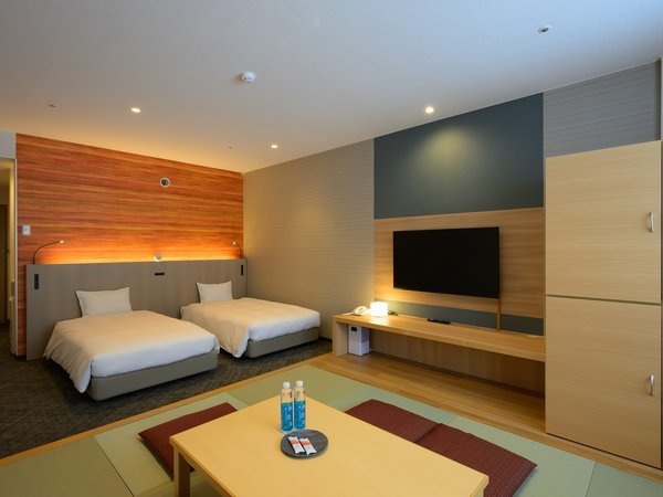 【森のフロア和洋室】ベッド2台、奥に和室がございます。グループでの利用に使い勝手の良いお部屋です。