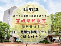 【15周年記念★朝食付き】宮崎県民の皆様へ…日・月限定の特別プランをご用意しました!