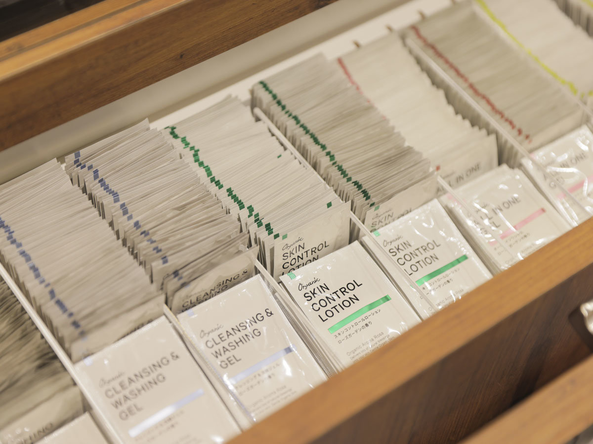 (リンスインシャンプー含む)× パジャマ × シャワーキャップ ○ リンス × バスローブ × 綿棒 サービス&レジャー