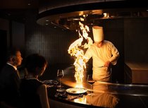 【鉄板焼 泉崎】鉄板の焼き音、香ばしい香り、炎が織りなす臨場感。