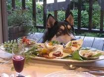 【BBQプラン】こちらは雨天時のドッグラン内でのお食事風景です