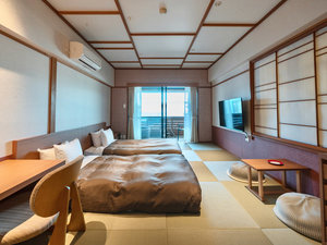 <本館>【露天風呂付和室】2021年7月にリニューアルしました。ワーケーション対応、ベッド、50型TV導入。 |