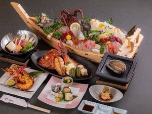 伊勢エビ・甘エビ・・お刺身いっぱいのお舟盛りは