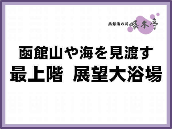 | 温泉 | 湯の川温泉(循環ろ過) | |||||||||||||||||||||||||||