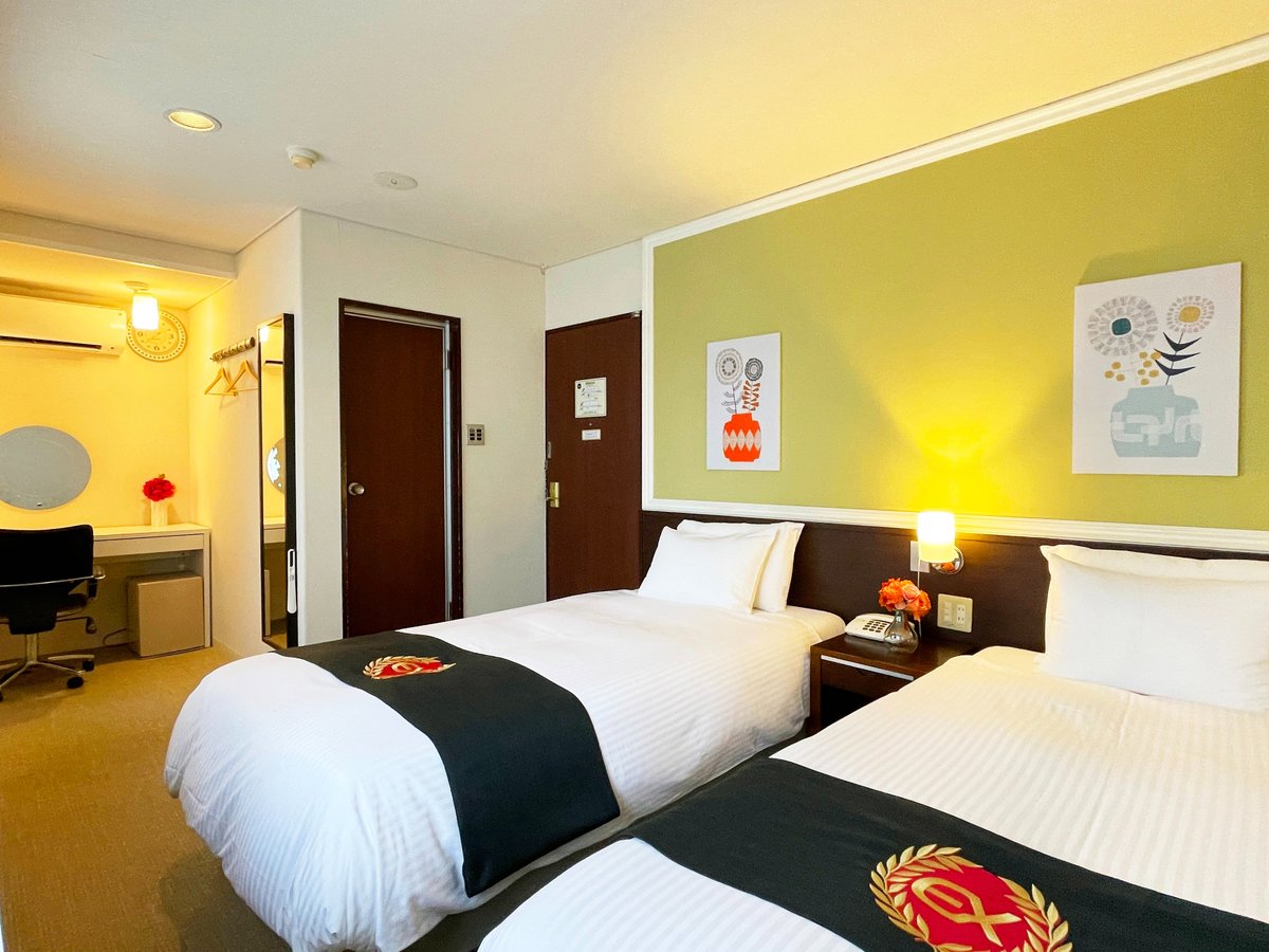 洋室 和室 和洋室 その他 総部屋数 91室 8室 1室 1室 101室 ▼洋室の内訳(部屋タイプと広さ) シングル ダブル ツイン スイート 56室 5室 30室 0室 11m2 13〜20m2 13〜22m2 - 部屋補足 和室は6〜8畳を中心に20畳まで。和洋室は6畳+ダブルベッド 標準的な部屋設備 全室バストイレ・全室シャワー・全室冷暖房・テレビ・衛星放送・空の冷蔵庫・ズボンプレッサー(貸出含む) インターネット関連 全室対応