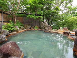 【#温泉-露天風呂(男湯)】茶臼岳を望む展望露天は四季の移ろいや山の雄大さが楽しめます。 |