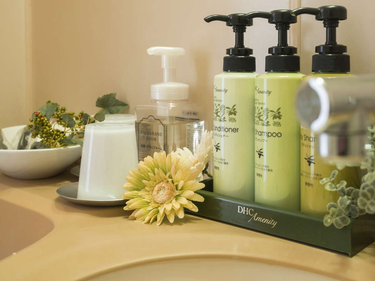 ○ ハンドタオル ○ ボディソープ ○ ドライヤー ○ 温水洗浄トイレ ○ 歯ブラシ・歯磨き粉 × 石けん ○ 羽毛布団 ○ くし・ブラシ ○ バスタオル × 浴衣 ○ 髭剃り ○ シャンプー