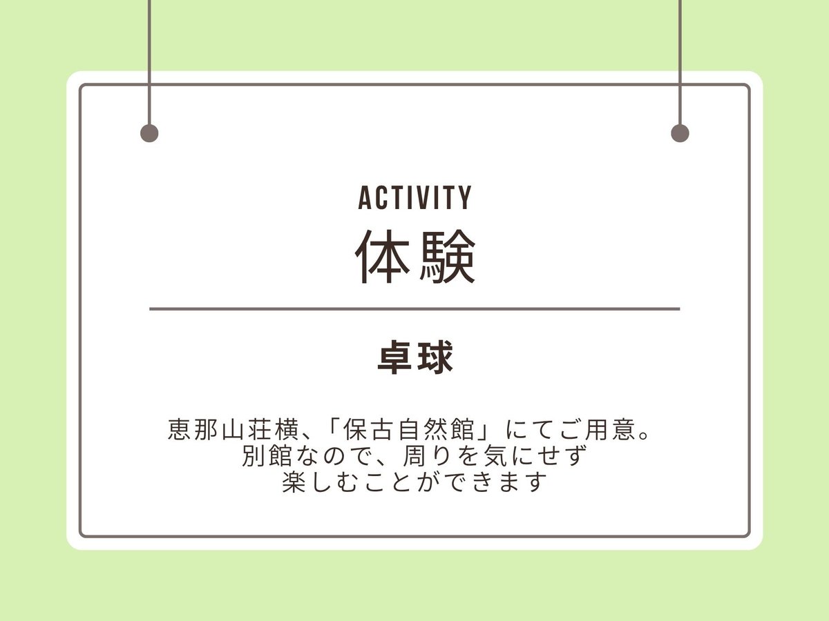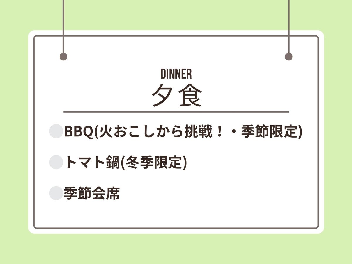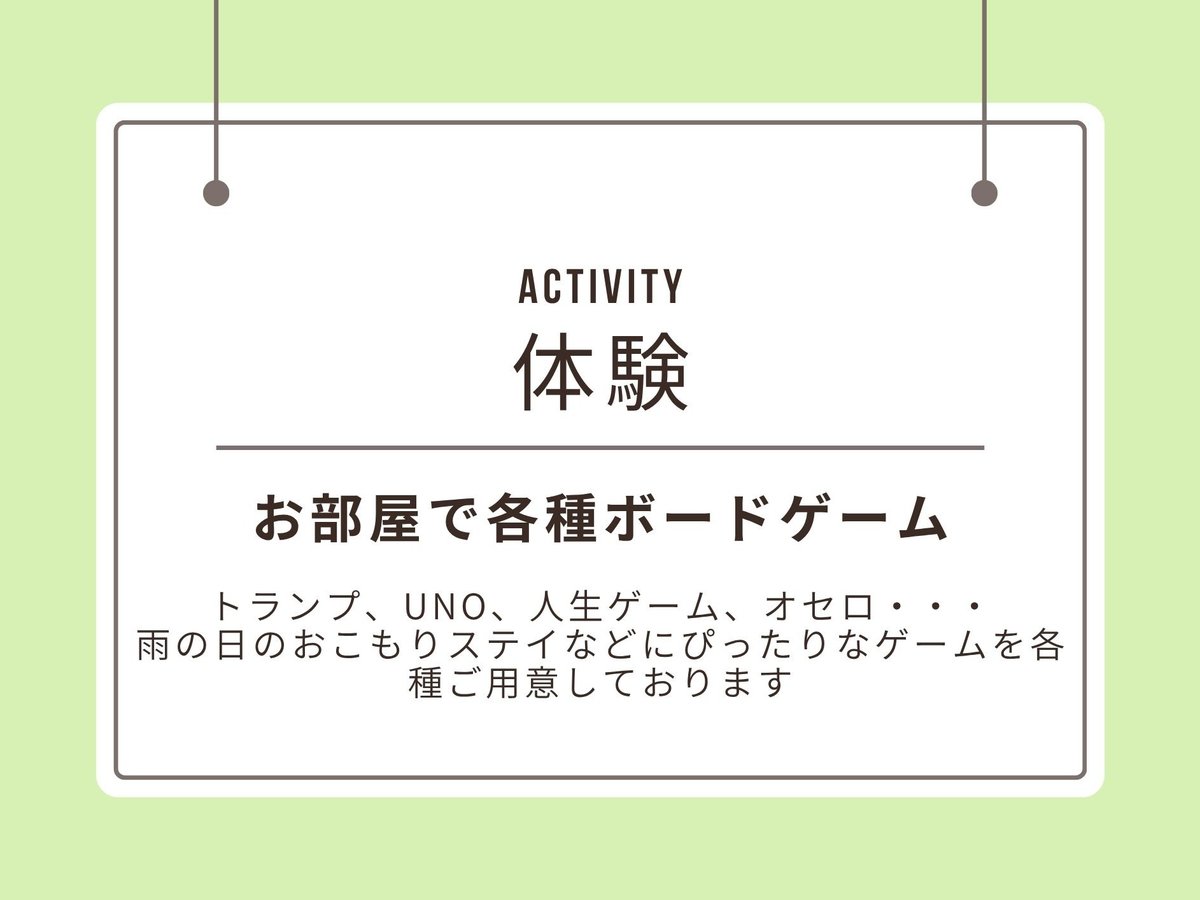 (リンスインシャンプー含む)× パジャマ × シャワーキャップ × リンス × バスローブ ○ 綿棒 施設内容 宴会場(有料)・バーベキュー(有料)・禁煙ルーム サービス&レジャー