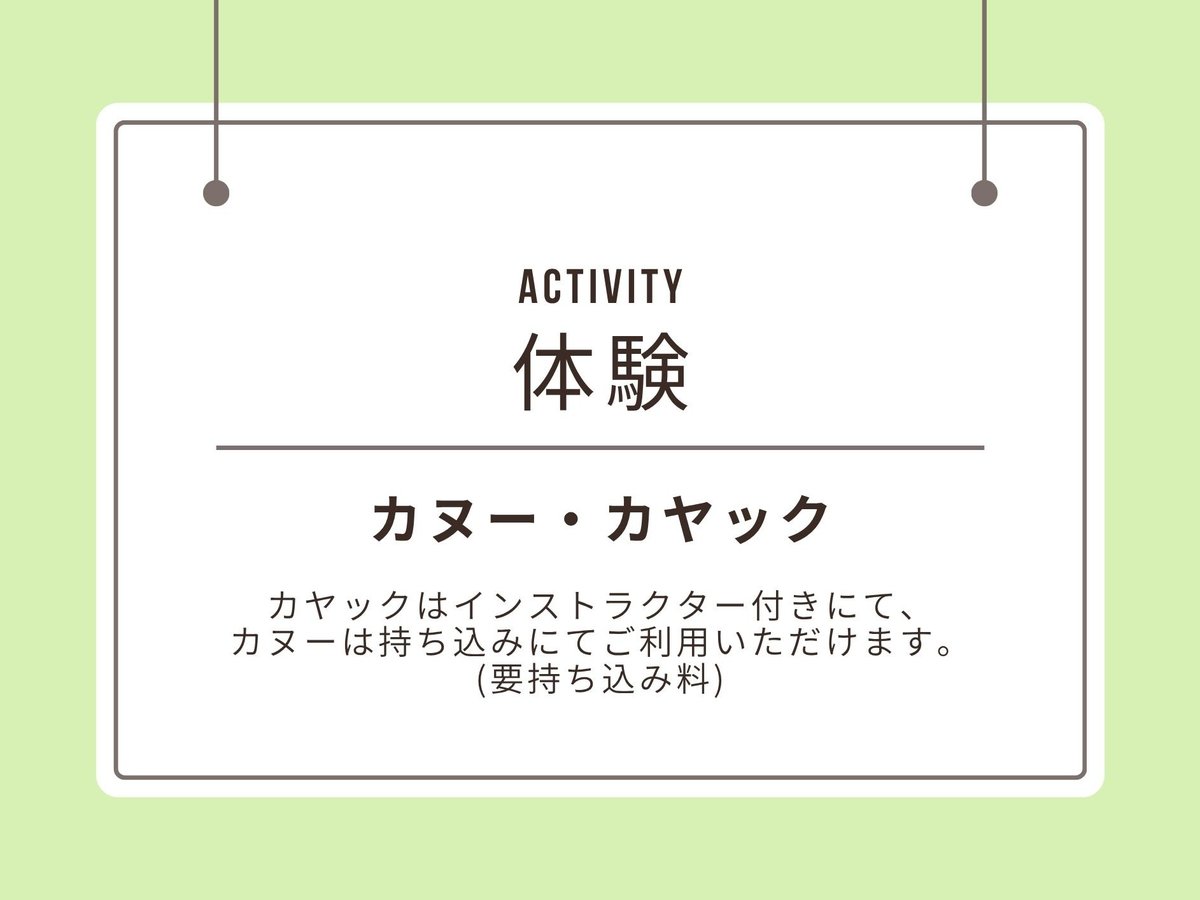 (手配含む)体育館(有料)・釣り(有料)・カヌー(有料) 現地で利用可能なクレジットカード JCB・VISA・マスター・AMEX・ダイナース・銀聯