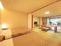 和のお部屋が多い中、スタイリッシュな空間が人気のツインルーム。