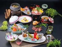 【ご夕食グレードアップ】お肉とお魚のWメイン!お食事処でグレードアップ和風コース料理