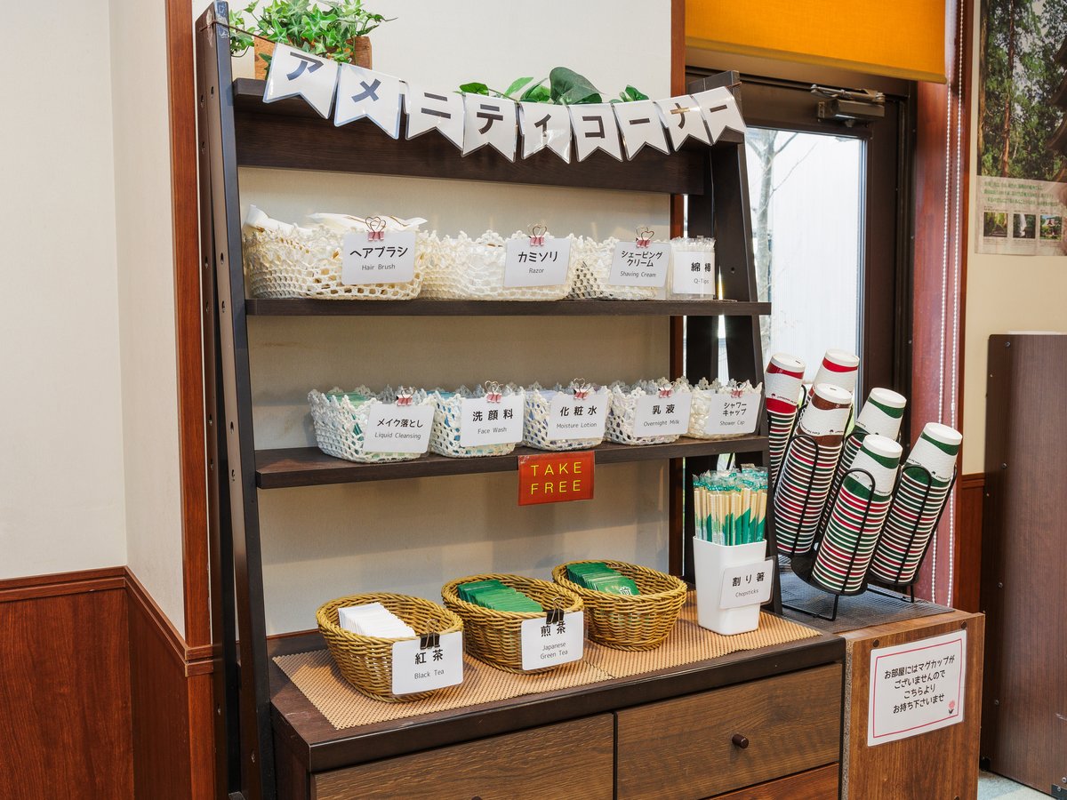 ○ ハンドタオル ○ ボディソープ ○ ドライヤー ○ 温水洗浄トイレ ○ 歯ブラシ・歯磨き粉 × 石けん ○ 羽毛布団 ○ くし・ブラシ ○ バスタオル × 浴衣 ○ 髭剃り ○ シャンプー