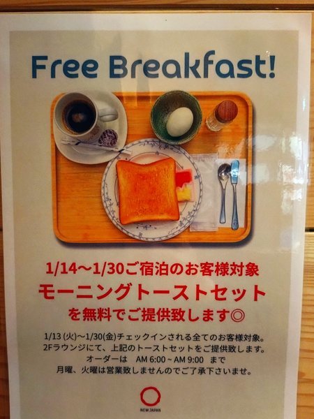 | × | バスタオル | ○ | 浴衣 | ○ | 髭剃り | ||