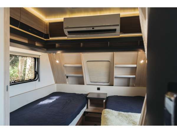 コンパクトトレーラー。冷暖房完備でゆったり過ごせます。