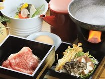 【最上級のご夕食】旬の食材を厳選!料理長こだわりの<やまざと膳>目の前で焼き上げる赤城牛or鮑