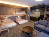 6連泊以上【最大6名OK】約38uの広々客室|ダブルベッド3台・キッチン&洗濯機付き