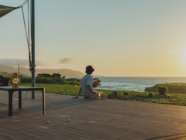 海が染まるサンセットタイム。ファイヤーピットで火を囲み、記憶に残る夜に。