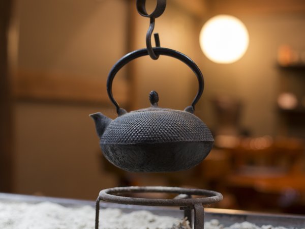 旅の始まり。伝統的な囲炉裏が彩る当館の静かなフロント