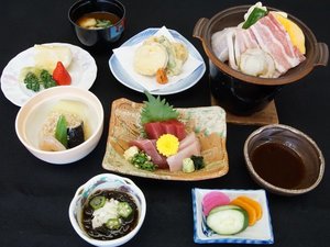 *お夕食「和食膳」駿河湾で捕れた新鮮な海の幸を使用し、一品一品丁寧にお作りした御膳です。 |