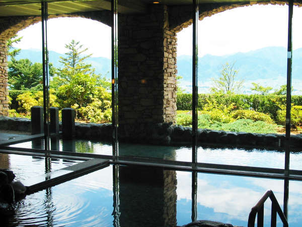 天然温泉大浴場 富士山や甲斐の山々が見えます