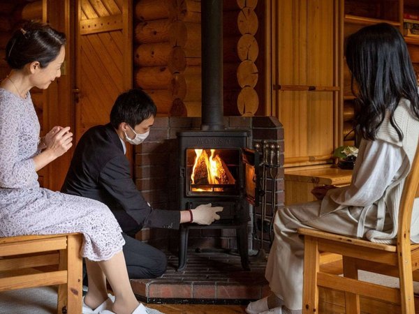 ◆コテージ 薪暖炉を灯せば心も身体も暖まります。