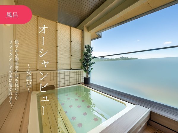 穏やかな勝浦湾の波を見ながらリラックスしてお湯に浸かれるオーシャンビューの女風呂