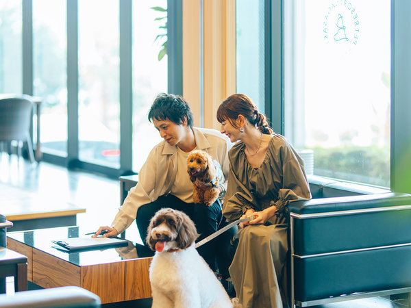 【ロビー】ゲージなしで移動できるのでワンちゃんもストレスフリー。※リードの着用をお願いいたします。