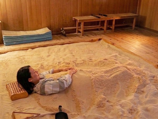R8年6月1日から新しい利用方法開始★フリースタイル砂塩風呂・ご自身で自分のペースで穴を掘る様子