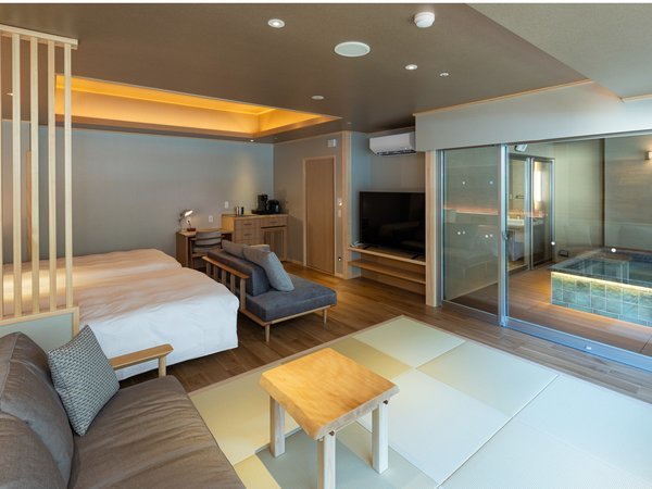 【最上階 温泉露天風呂付 雅〜MIYABI〜】和洋室 Bタイプ・露天風呂一例