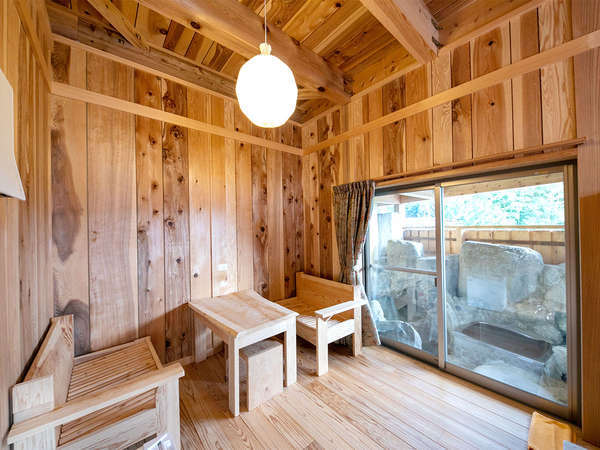 樹齢300年を越す杉や高野槙をふんだんに使用した客室は木の香りに包まれた寛ぎの空間。源泉掛け流し100%の温泉を客室でも堪能できます♪ご宿泊いただいた方、屋久杉記念館の見学も可能です! |